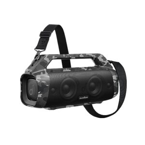 - READY FOR TRAVEL: Thanks to the lightweight and sturdy build coupled with the compact design, you can easily carry this outdoor bluetooth speaker with you anywhere you go. It’s designed with a carabiner clip so you can play music while keeping keep your hands empty when traveling.